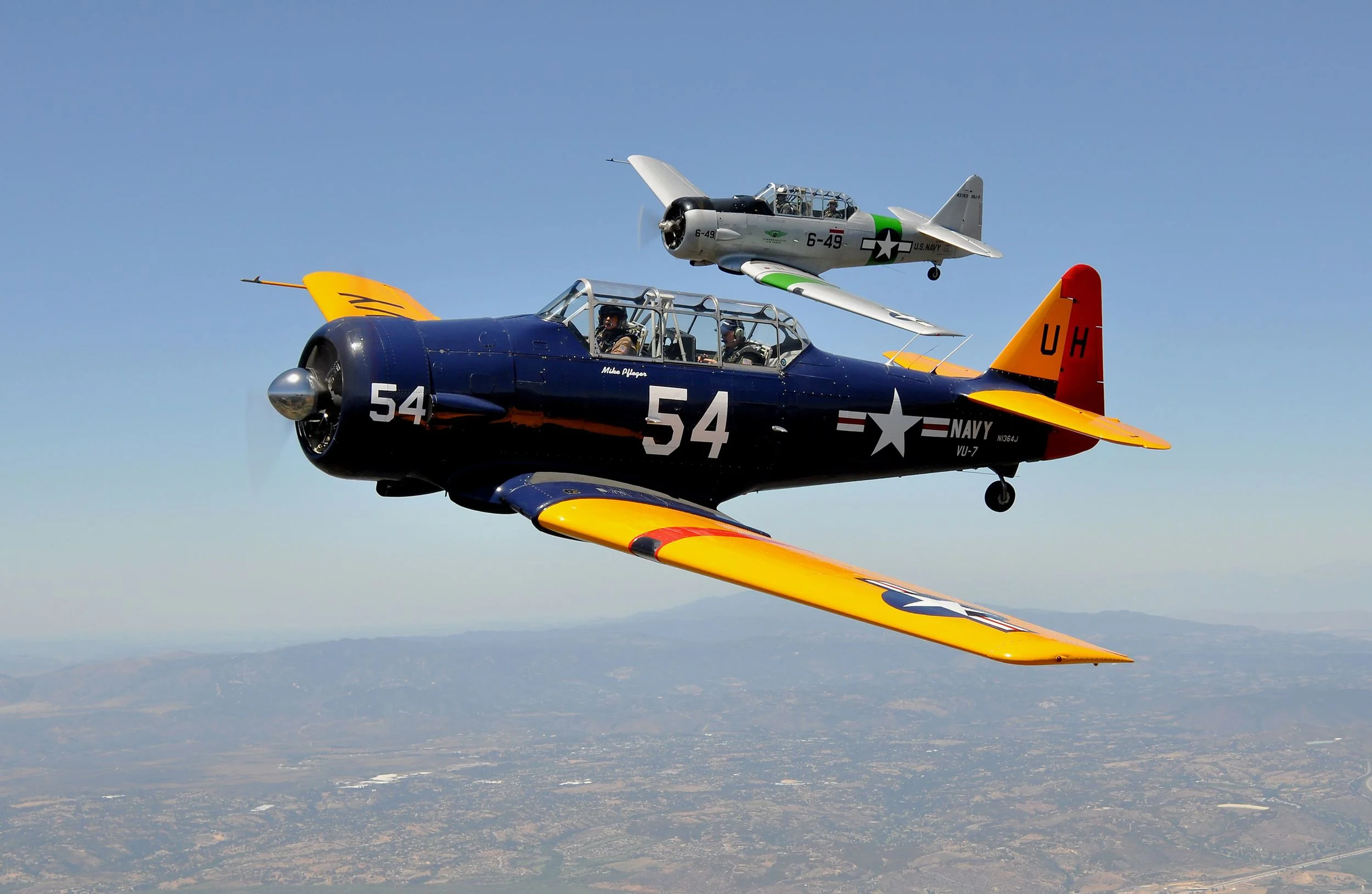 You can fly in Air Group One's beautifully restored and maintained SNJ-5 “Sassy” in the skies over the most scenic areas of San Diego. In addition to being a memorable adventure for you, a memorable ride in “Sassy” makes a great gift of flight for a husband, wife, father, or other loved one in your life. Gift Certificates are available! Bring a camera and capture memorable photo opportunities of San Diego!